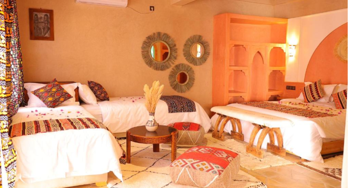 Die Unterkunft Riad Dar Susan – Authentic Stay in Zagora, die in Zagora gelegen ist, verfügt über einen Garten. Es gibt eine Terrasse und die Gäste können einen kostenlosen Privatparkplatz und kostenloses WLAN nutzen. Es gibt ein eigenes Badezimmer mit einer Dusche und kostenlosen Pflegeprodukten – mehrere Zimmer bieten den Gästen in der Unterkunft Riad Dar Susan – Authentic Stay in Zagora außerdem Stadtblick. Die Zimmer in der Unterkunft Riad Dar Susan – Authentic Stay in Zagora verfügen über Klimaanlage und einen Kleiderschrank. Beim Frühstück werden als Buffet angebotene, kontinentale oder vegetarische Optionen angeboten. Der nächstgelegene Flughafen ist der Flughafen Zagora, 17 km von der Unterkunft Riad Dar Susan – Authentic Stay in Zagora entfernt.